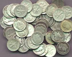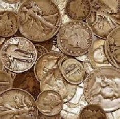 Silver Coins: Prior to mid-1960's, most U.S. dimes, quarters,